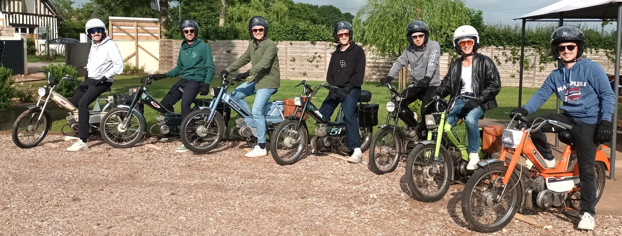 Par un système de location de cyclomoteurs aux couleurs variées, il est possible de découvrir les routes de pays d’Auge (Calvados) tout en retrouvant les émotions de sa jeunesse. Une découverte aussi pour la nouvelle génération. Le rassemblement de vieux tracteurs à Tortisambert constituait sa première sortie le 1er mai. Un temps fort de la nostalgie et des souvenirs de jeunesse où Céline Arnould avait toute sa place avec ses cyclomoteurs vintages.